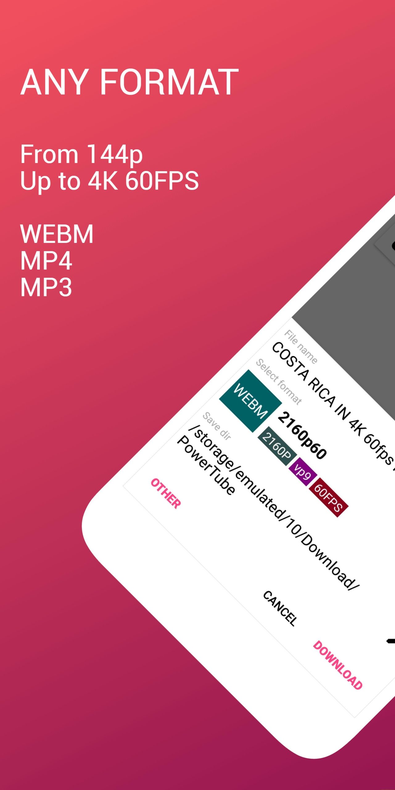 With PowerTube, Android users can have access to the minimalistic app designs with clean layouts and intuitive UI. Here, the accessible menus and undemanding features in the app will make sure that you can freely enjoy your in-app experiences. By featuring many tutorials and instructions, new users should have little troubles working with the app. Feel free to make use of its features to start downloading videos from any platforms, using any methods.